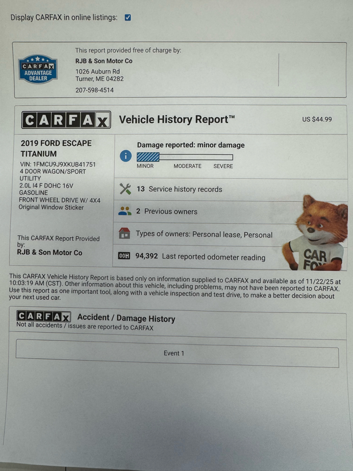 Visit RJB & Son Motor Co. online at rjbandson.com to see more pictures of this vehicle or call us at 207-225-2205 today to schedule your test drive.